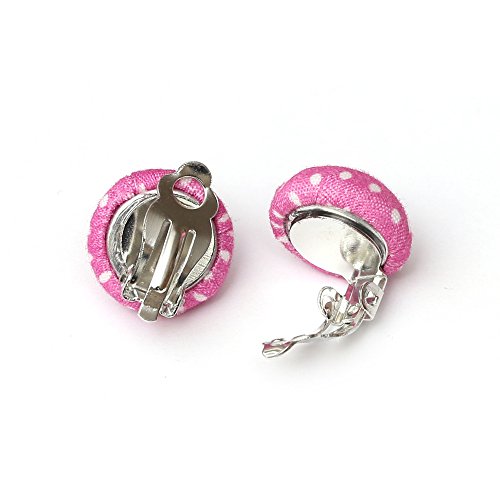 Idin Orecchini a clip - Bottoni rivestiti in tessuto, rosa con pois (ca. 15 mm in diametro)