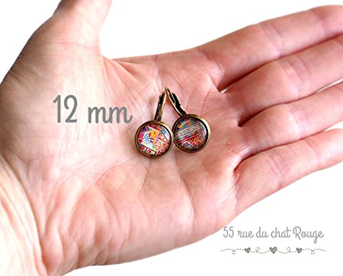 Orecchini cabochon in argento, fiore giapponese rosso, seigaihia, modello giapponese, giappone, rosso e bianco