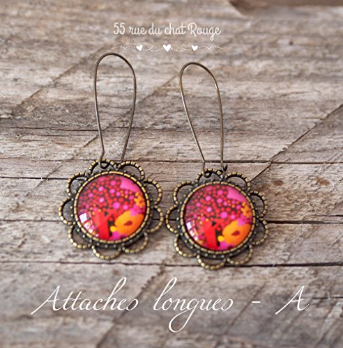 Orecchini Cabochon Orecchini galloni, rosso e arancione