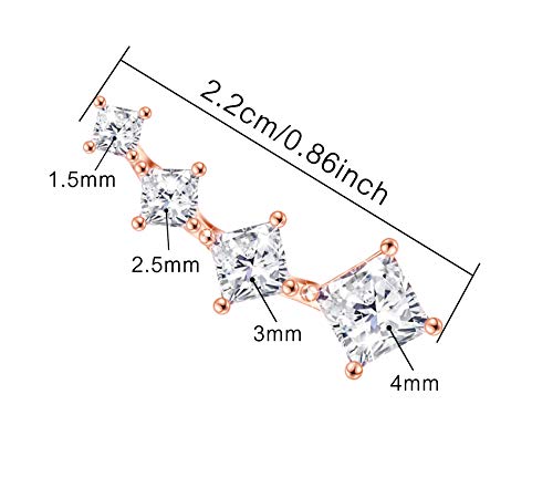 Orecchini cartilaginei placcati oro 14K in argento sterling CZ 925 con piercing in zirconia cubica Orecchini a bottone ipoallergenici quadrati con 4 cristalli per donna