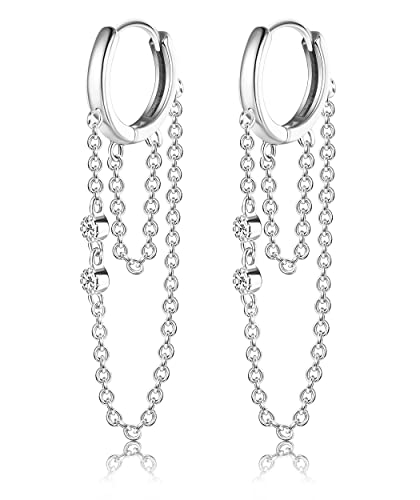 KRFY Orecchini a Catena Argento Sterling 925 Orecchini a Cerchio con Catena Placcato Oro 18K Threader Orecchini Pendenti CZ Cartilagine Helix Tassel Drop Cuff Huggie Orecchini per Donne Ragazze
