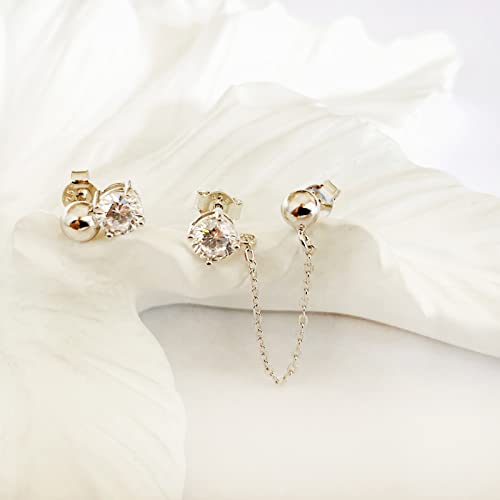 Orecchini a Catena Argento Sterling de Donna, Asimmetrici AAA Cubic Zirconia Ipoallergenici, Orecchini a Bottone da Donna