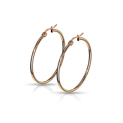 Orecchini a cerchio in acciaio inox, colore rosa, diverse misure e Acciaio inossidabile, cod. 3701181753484