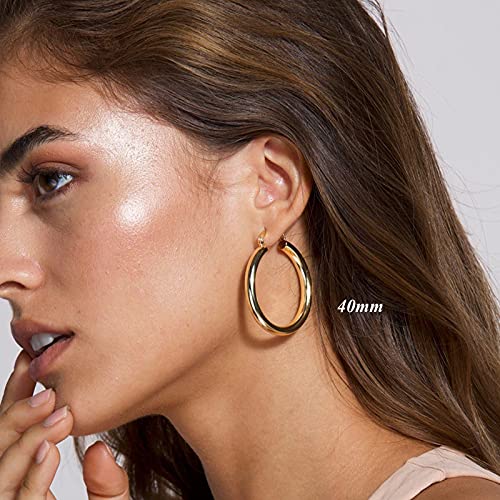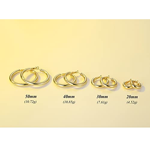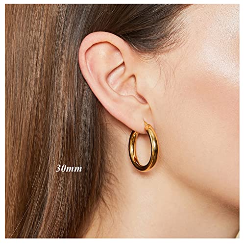 Orecchini a cerchio in argento 925, in oro rosa, diametro 20 mm/30 mm/40 mm/50 mm, spessore 5 mm, leggeri Huggie orecchini a cerchio per donna, uomo e ragazza e placcato Oro, colore: dorato C012b-30