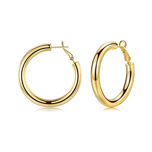 Orecchini a cerchio in argento 925, in oro rosa, diametro 20 mm/30 mm/40 mm/50 mm, spessore 5 mm, leggeri Huggie orecchini a cerchio per donna, uomo e ragazza e placcato Oro, dorato, cod. C012b-40
