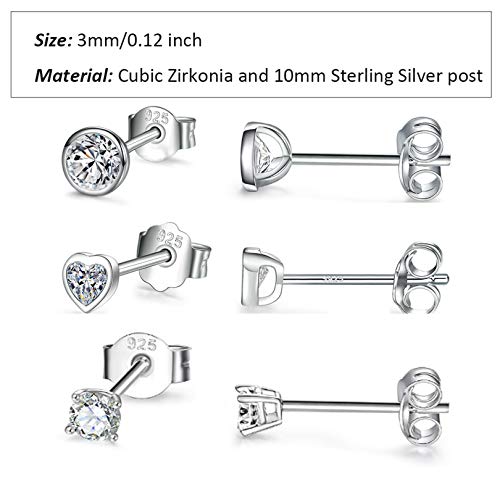 Orecchini a cerchio in argento, 3 paia di piccoli orecchini a cerchio in argento Sterling 925 con zirconia cubica AAA, 3 paia di orecchini a cerchio in argento, ipoallergenici, per donne e uomini