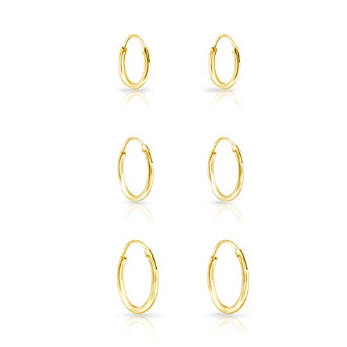 Set da 3 Orecchini a Cerchio in Argento 925 Placcato Oro Giallo - Orecchini Cerchietti - Orecchini Cerchio Oro Giallo - Diametro 10, 12, 14 mm