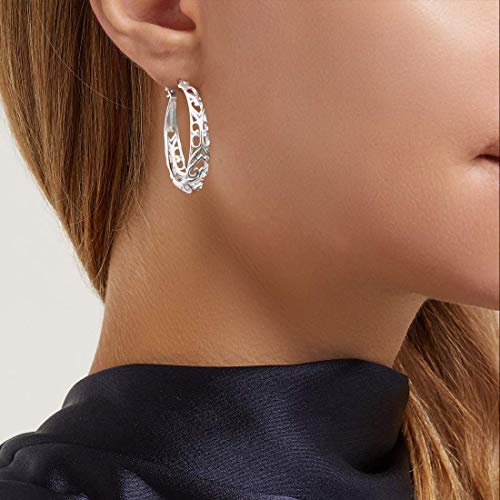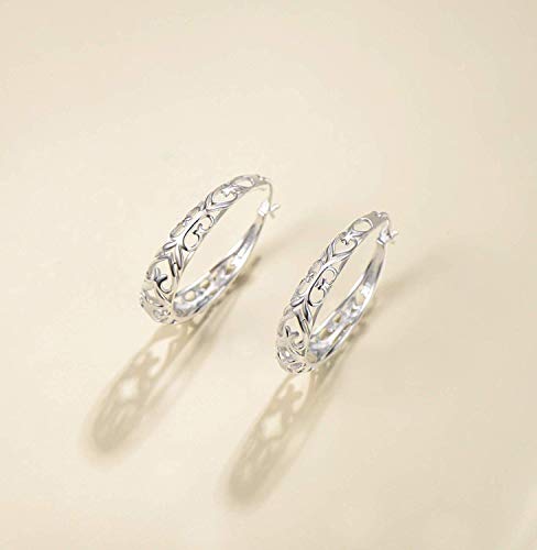 Orecchini a cerchio in argento Sterling 925 massiccio, placcati in oro bianco, misura media, stile celtico delicato per donne e ragazze, diametro 35 mm, larghezza 6 mm