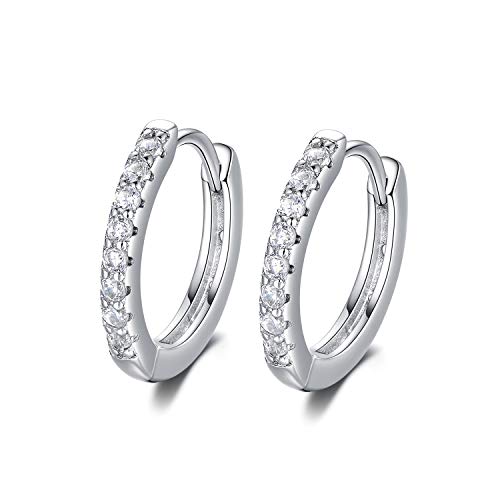 Orecchini a cerchio, in argento Sterling 925, con zircone cubico, piccoli orecchini a cerchio, ipoallergenici, idea regalo per donne, ragazze, bambini, figlia, Argento, zirconia cubica