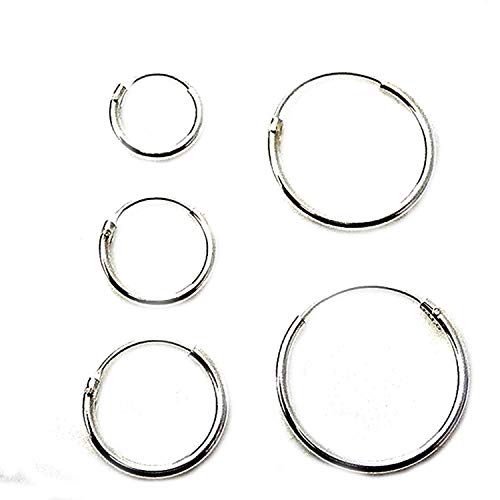 Orecchini Cerchio, Cerchietto, Lotto 5 Pezzi in Argento 925 Mis°: 8/10/12/14/16 MM