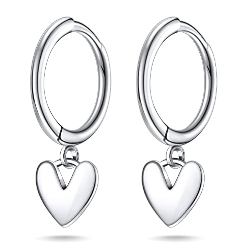 Orecchini a Cerchio con Ciondolo d'Amore Orecchini Pendenti a Cuore Piccoli Orecchini in Argento S925 con Ciondolo a Forma di Cuore Carino per Donne e Ragazze