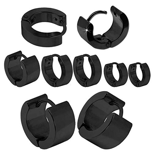 2 Orecchini a Cerchio Creoli Acciaio Inox Clip Piercing Huggie Colore Nero 5 Misure Gioielli, Farbe2:schwarz/black - 11mm x 4mm