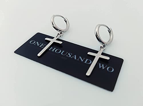 Orecchini a cerchio con croce pendente unisex