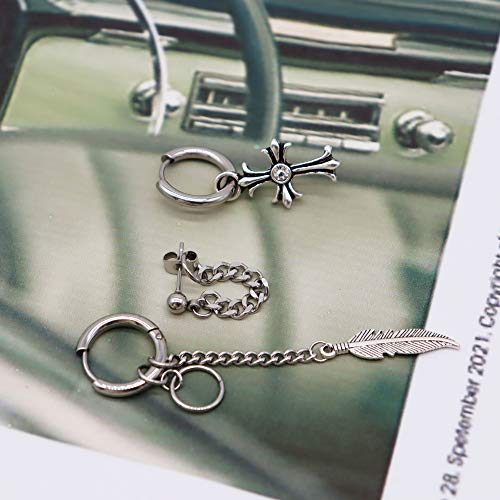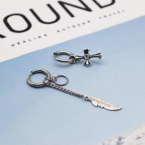 Orecchini a cerchio da uomo con croce e piuma a forma di cono, in acciaio inox 316L, stile punk, hip hop, rock, gotico, Kpop, per uomini, donne