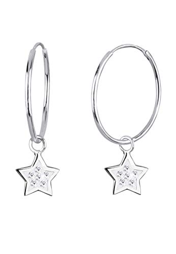Elli Orecchini a Cerchio da Donna, con Cristallo, Argento Sterling 925