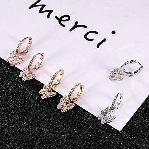 Orecchini a cerchio da donna, ipoallergenici, placcati in oro rosa e argento con zirconi cubici, idea regalo per mamma, amici e Rame, colore: Placcato in argento., cod. E296-TEH0381-SL