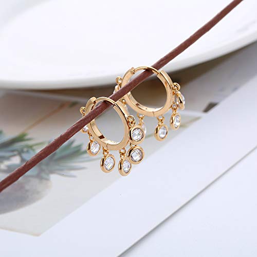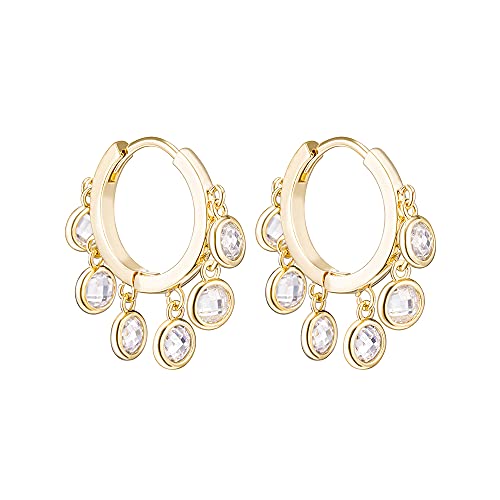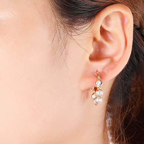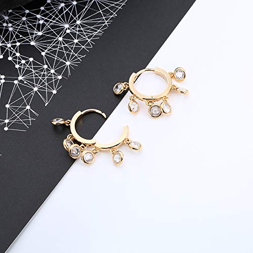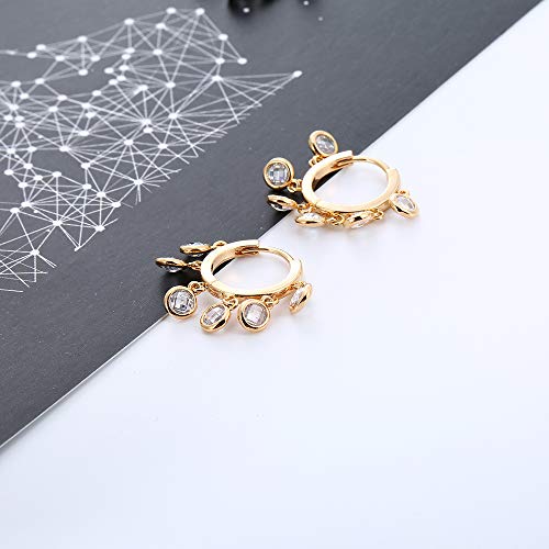 Orecchini a cerchio da donna, ipoallergenici, placcati oro rosa o argento, con zirconi pendenti colorati e brillanti, idea regalo per mamma e amici e Rame, colore: Placcato oro., cod. TEH0334-GD