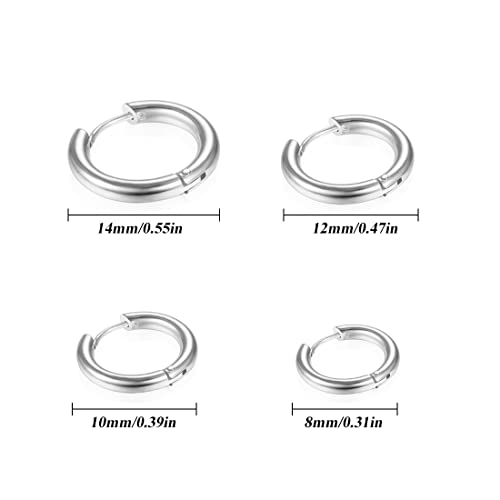 4 Paia Orecchini Cerchio per Uomo Donnain Acciaio Inossidabile,Orecchini Donna Cerchio Piccoli, Orecchini Uomo Cerchio, Orecchini Argento Uomo Donna, Gioielli Orecchini a Cerchio da Uomo 8MM-14MM