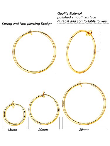 6 Paia Orecchini a Cerchio Falso Non Forato Anello del Naso Mucchio della Sorgente Orecchini Clip dell'Orecchio del Labbro Gioielli per Corpo, Multi Dimensioni, Acciaio e Colore Oro