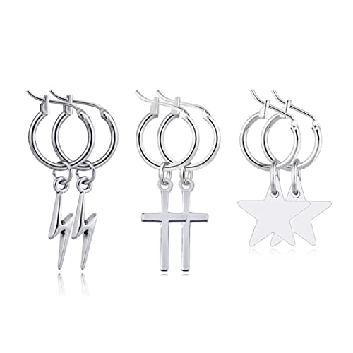 ❤ Piccoli orecchini a cerchio alla moda unici con ciondoli semplici. Riceverai tre diversi orecchini (fulmine, stella, croce) Usa questi squisiti orecchini per esprimere la tua personalità.