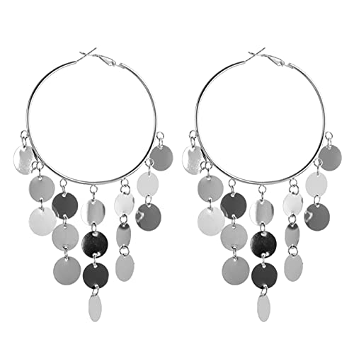 Orecchini a cerchio Orecchini a cerchio grande liscio Orecchini in oro con paillettes Brincos Orecchini color argento per regalo di gioielli da donna