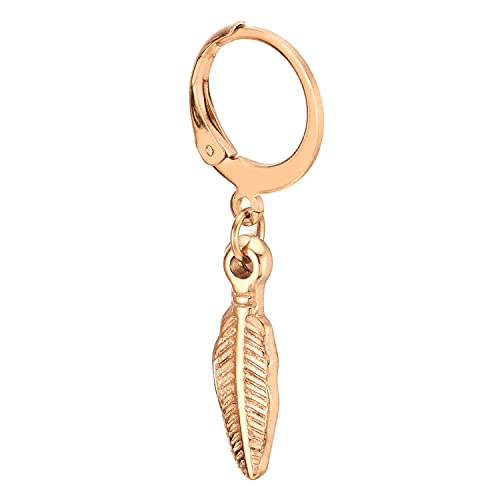 2 Oro Rosa Orecchini a Cerchio con Pendenti Annata Piuma Foglia, Orecchini da Uomo Donna, Acciaio Inossidabile