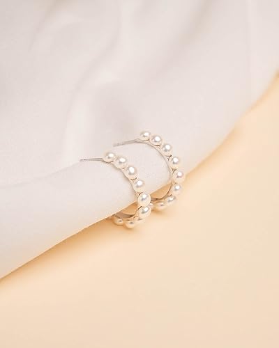 Orecchini a Cerchio di Perle Coltivate d'acqua dolce bianche da Donna di SECRET & YOU - Argento 925 con 13 perle Button di 4-5mm.