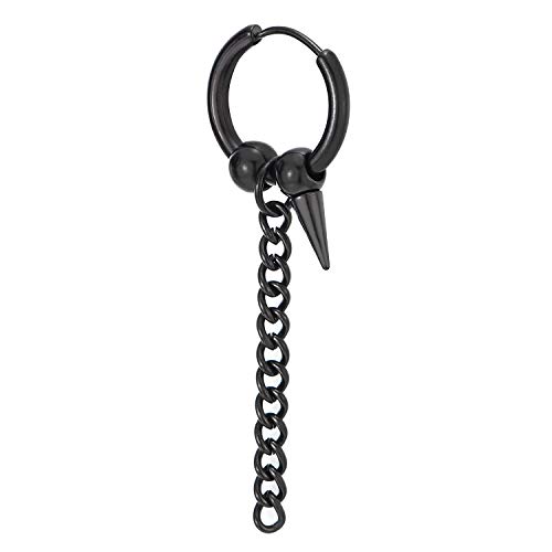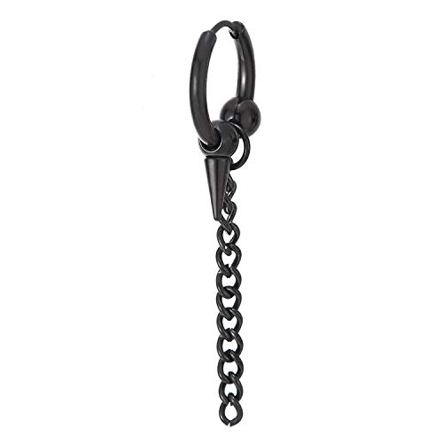 Nero Orecchini a Cerchio con Perlina, Spike, Pendenti Lunga Catena, Orecchini da Uomo Donna, Acciaio