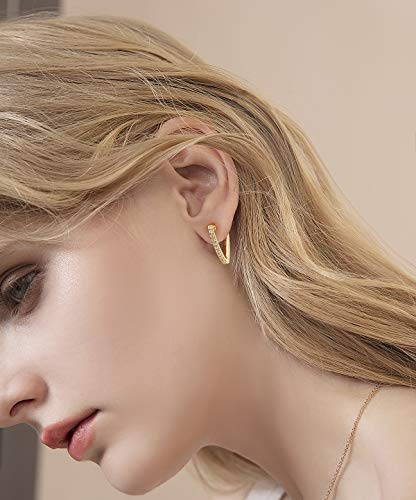 Orecchini a Cerchio Piccoli per Donna in Argento Sterling 925 Placcato Oro Giallo con Zirconia Cubica