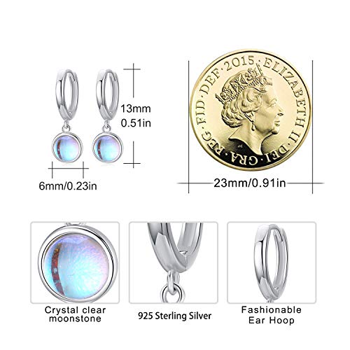 Orecchini a cerchio in pietra di luna Orecchini in argento sterling 925 con pietra di luna arcobaleno Orecchini a cerchio piccoli per orecchini da donna Orecchini creoli