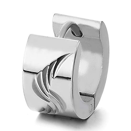 2 Orecchini a Cerchio con Scanalato Modello laser, Orecchini da Uomo Donna, Acciaio Inossidabile