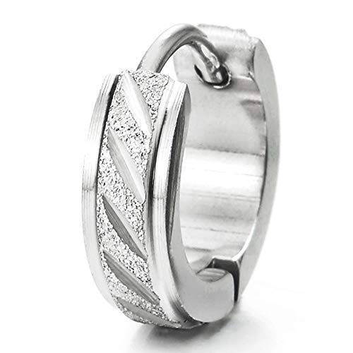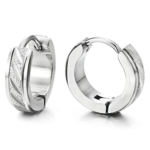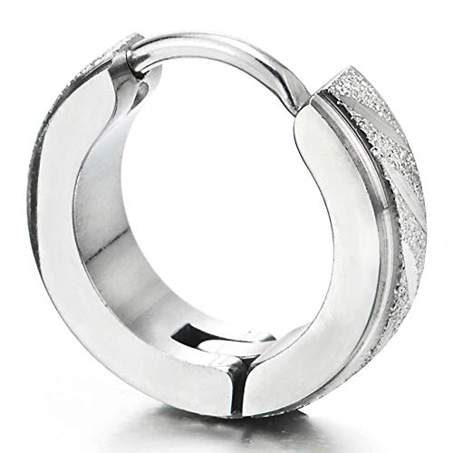 2 Orecchini a Cerchio con Scanalato Modello laser, Orecchini da Uomo Donna, Acciaio Inossidabile, Lucido e Satinato