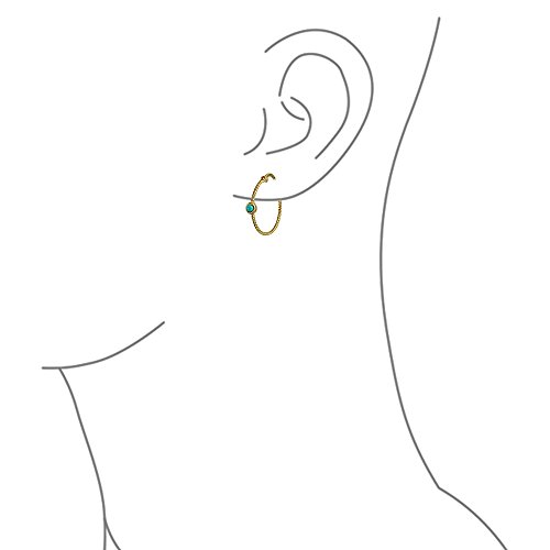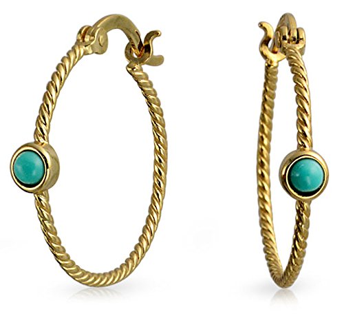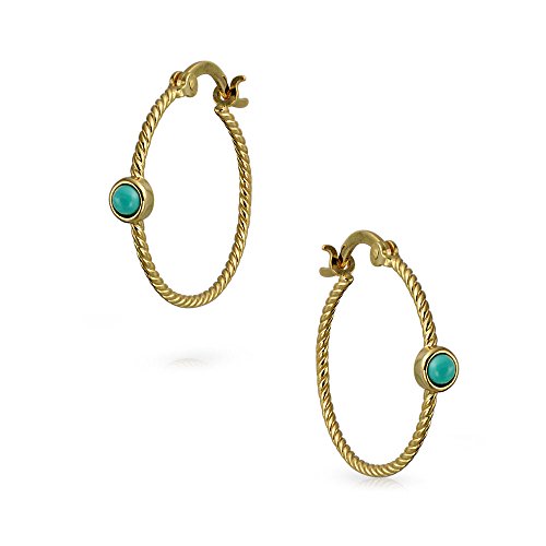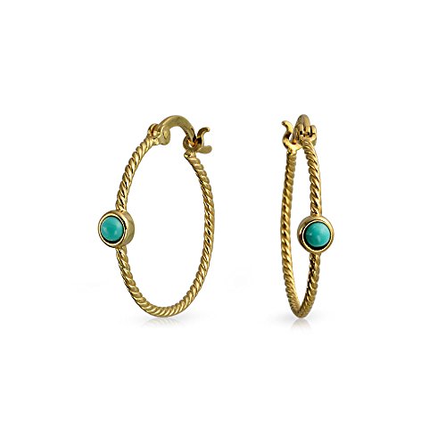 Orecchini a cerchio sottile corda cavo intrecciata accento turchese stabilizzato per le donne 14K oro placcato argento sterling 1 pollice dia