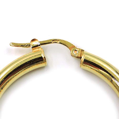 Orecchini a Cerchio Spesso in Argento 925 Placcato Oro Giallo Diametro cm 3,5 Argento