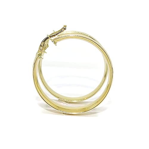 Orecchini a cerchio super larghi in oro giallo 18 carati, 7 mm di larghezza e 3,20 cm di diametro esterno, peso: 4,90 g di oro 18 carati, chiusura facile a scatto di sicurezza.