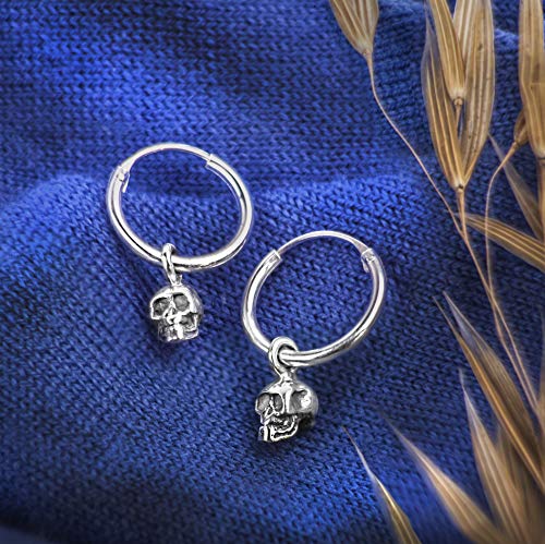 Orecchini a cerchio con teschio in argento 925 senza nichel