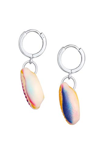 Elli Orecchini Creoli di Bambini Conchiglia Kauri Arcobaleno in Argento Sterling 925
