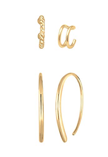Elli Orecchini Creolo Earcuff Set di base Blogger Trend in argento sterling 925 placcato oro