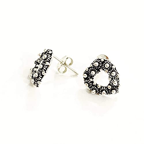 Orecchini CUORE con foro centrale in Argento brunito, lavorazione tipica Sarda a nido d'ape