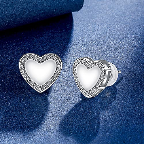 J.MUEN Orecchini Cuore Donna, Argento Sterling 925 con Zirconi Cubic,Regali Gioielli per Madre Amica Moglie