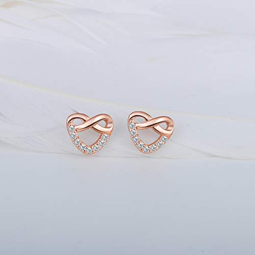 Orecchini mini cuore da donna, orecchini a perno in argento 925, con simbolo dell'infinito, con zirconi lucido, Orecchini da ragazza, idea regalo per Natale, compleanno