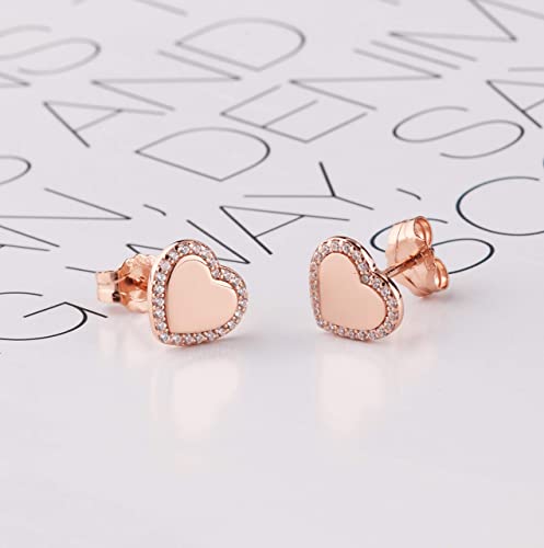 EME Orecchini lobo a cuore con zirconi in argento 925 paccato in Oro rosa senza Nichel senza Cadmio orecchini antiallergici ragazza in argento 925