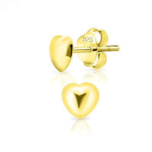 Orecchini Donna Argento 925 Placcato Oro Giallo - Orecchini Piccoli Donna a Lobo - Orecchini Oro Placcato a Perno a forma di Cuore - Diametro: 5 mm