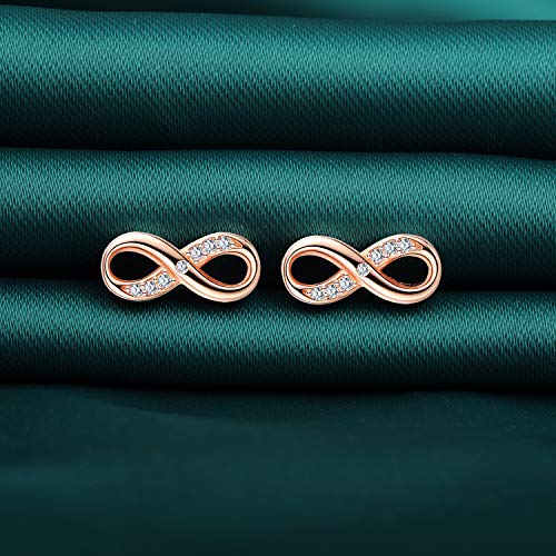 Orecchini da donna in argento sterling 925, orecchini a perno a forma simbolo dell'infinito, con zirconi, Argento e oro rosa, Regalo di Natale o di compleanno
