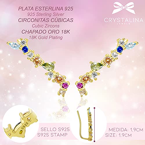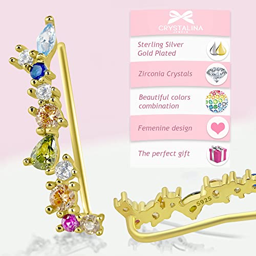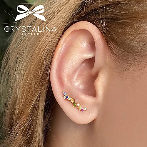 DESIGN - Bellissimi orecchini rampicanti con un design moderno e femminile. Orecchini piccoli in argento con cristalli colorati, ideale per ogni età