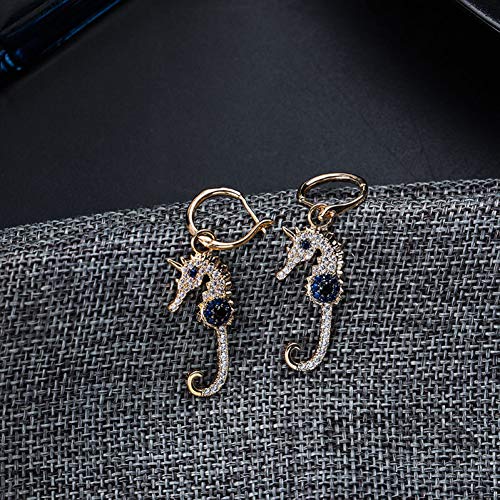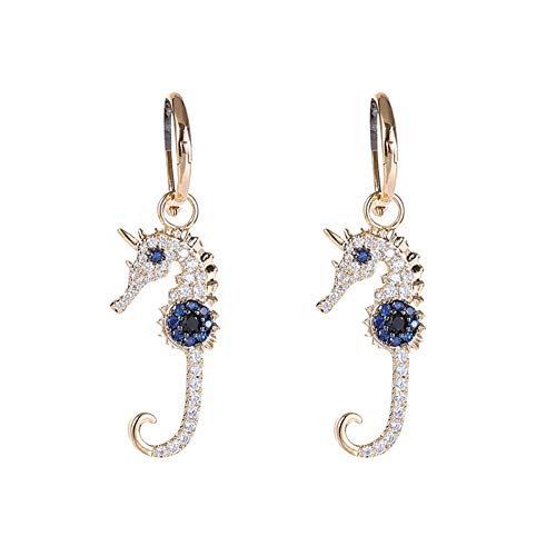 Orecchini da Donna Argento 925, Stile Europeo Vintage Zircone Cavalluccio Marino Clip Orecchino Femminile Placcatura Fibbia Orecchio Moda, Regalo Per Feste Ipoallergenico Senza Piombo Orecchini Gioie