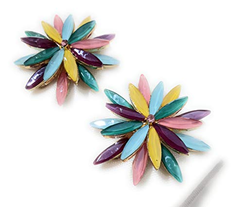 Orecchini da donna con cristalli colorati, a forma di fiore, placcati argento e oro, vari colori e placcato Oro, colore: Toni pastello