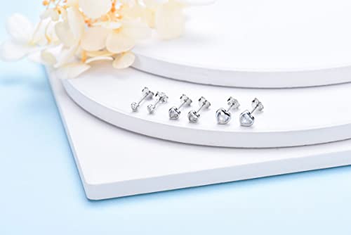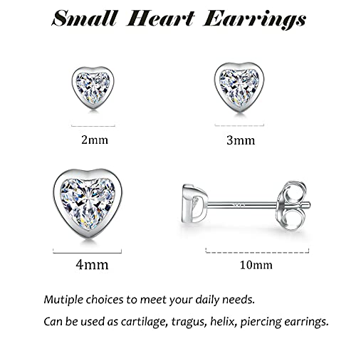 Set di Orecchini da Donna - 3 Paia a Cuore con Zirconi Cubici AAA in Argento Sterling 925 Borchie Piercing alla Cartilagine dell'orecchio Trago Dormiente Orecchini Regali 2 mm/3 mm/4 mm