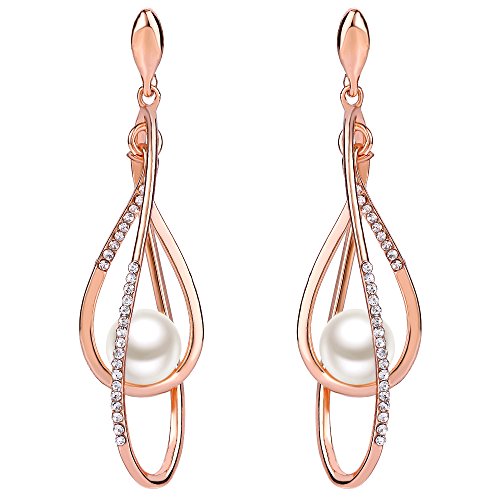 Orecchini donna,EVER FAITH Cristallo austriaco Perla simulata Sposa lungo Cerchio a goccia Orecchini pendenti Trasparente Rose Oro-fondo