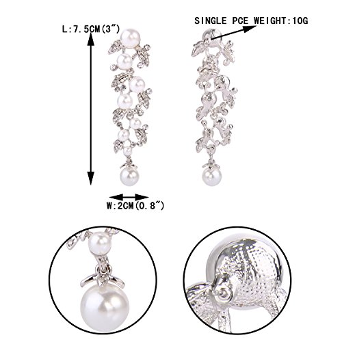 Orecchini donna,EVER FAITH Cristallo Bianco Perla simulata Cerimonia foglia Orecchini pendente Trasparente Argento-fondo